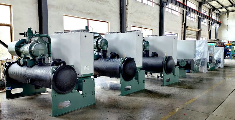 設備名稱:蒸發冷螺桿低溫鹽水組 應 用:工藝冷卻出水溫度:-15℃ 壓 縮 機:半封閉螺桿式 數 量:5臺/套